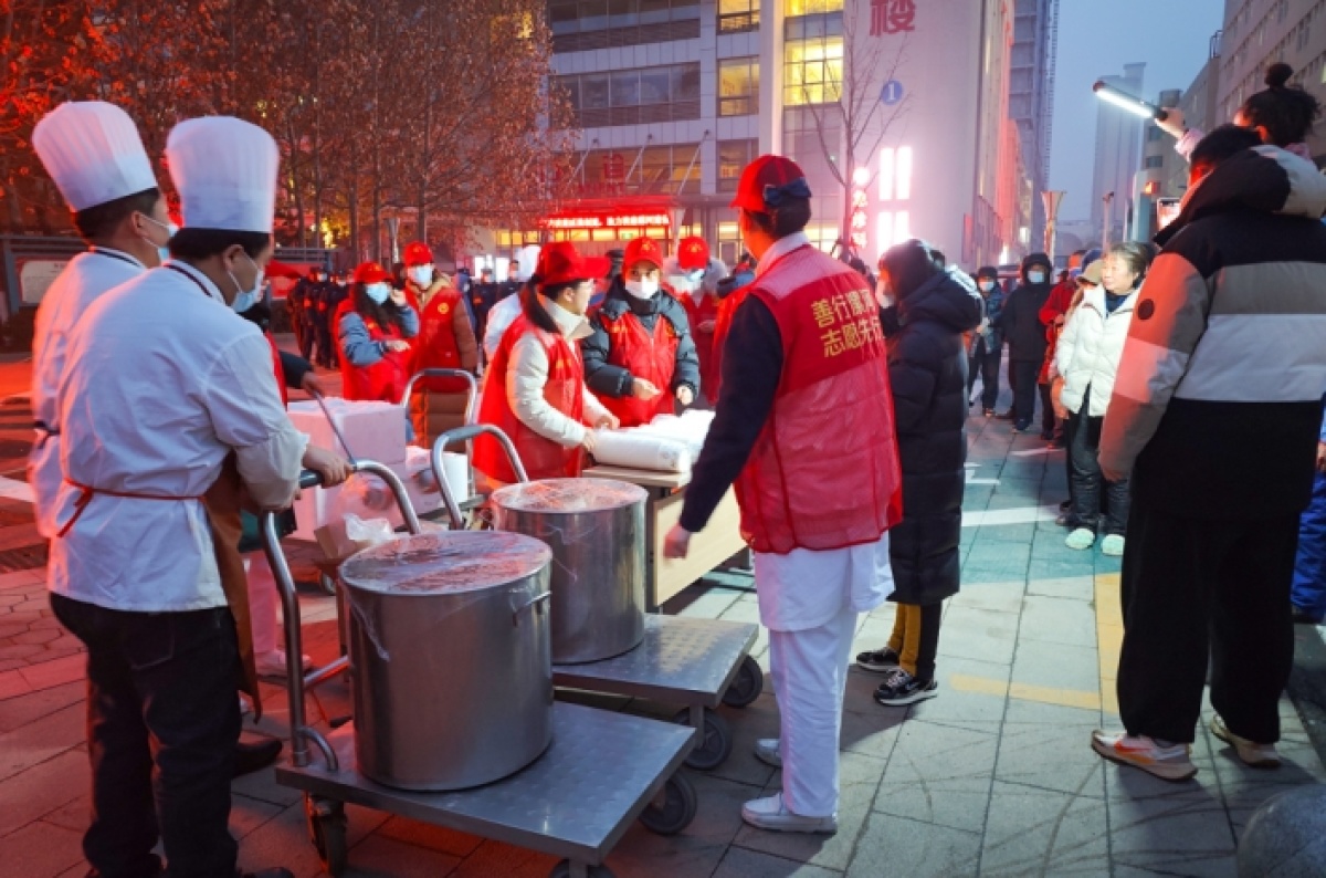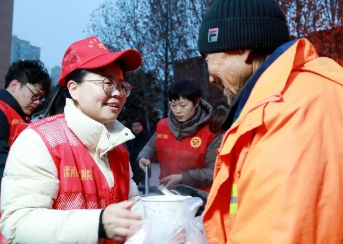 1000余碗臘八粥、600多個包子、10余斤咸菜......被悉數(shù)送出,前來領(lǐng)取愛心粥的不僅有患者及家屬,更有附近的環(huán)衛(wèi)工人和群眾。一碗碗愛心粥,不僅是暖手、暖胃,更是暖人、暖心。