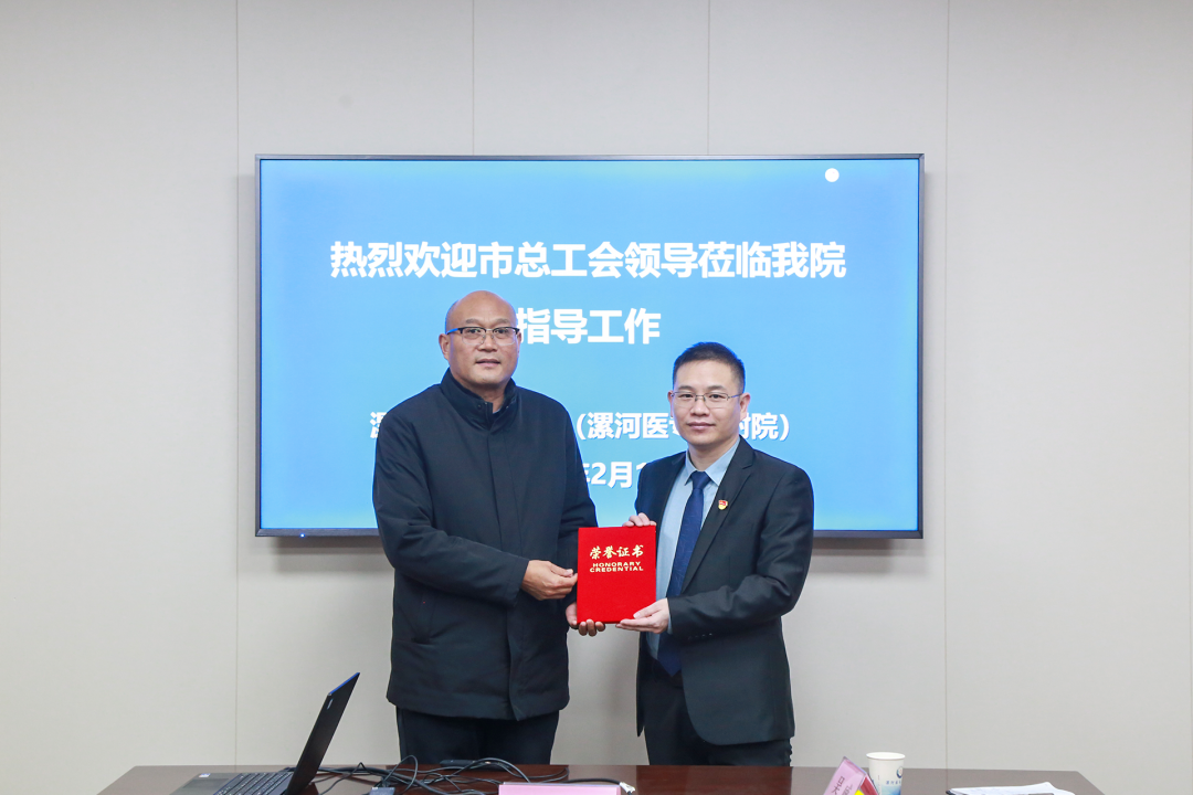2月1日,漯河市總工會(huì)黨組成員、副主席張振凡,市總工會(huì)科教文衛(wèi)體工會(huì)主任谷賀衛(wèi)專程來(lái)院將榮譽(yù)證書(shū)送到陳小村和陳宏峰手中,勉勵(lì)他們立足本職、再接再厲,不斷提高道德水平和業(yè)務(wù)素質(zhì),為推動(dòng)我市衛(wèi)生事業(yè)全面深入發(fā)展作出新的更大貢獻(xiàn)。
