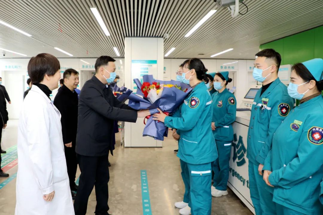 2月8日上午,新春佳節(jié)來臨之際,市衛(wèi)健委黨組成員、市紀(jì)委監(jiān)委派駐第二十一紀(jì)檢監(jiān)察組組長朱黎明一行到市二院看望慰問一線醫(yī)護(hù)人員,并送上節(jié)日的問候。黨委書記魏松、院長王瑾攜領(lǐng)導(dǎo)班子及相關(guān)職能部門負(fù)責(zé)人陪同慰問。