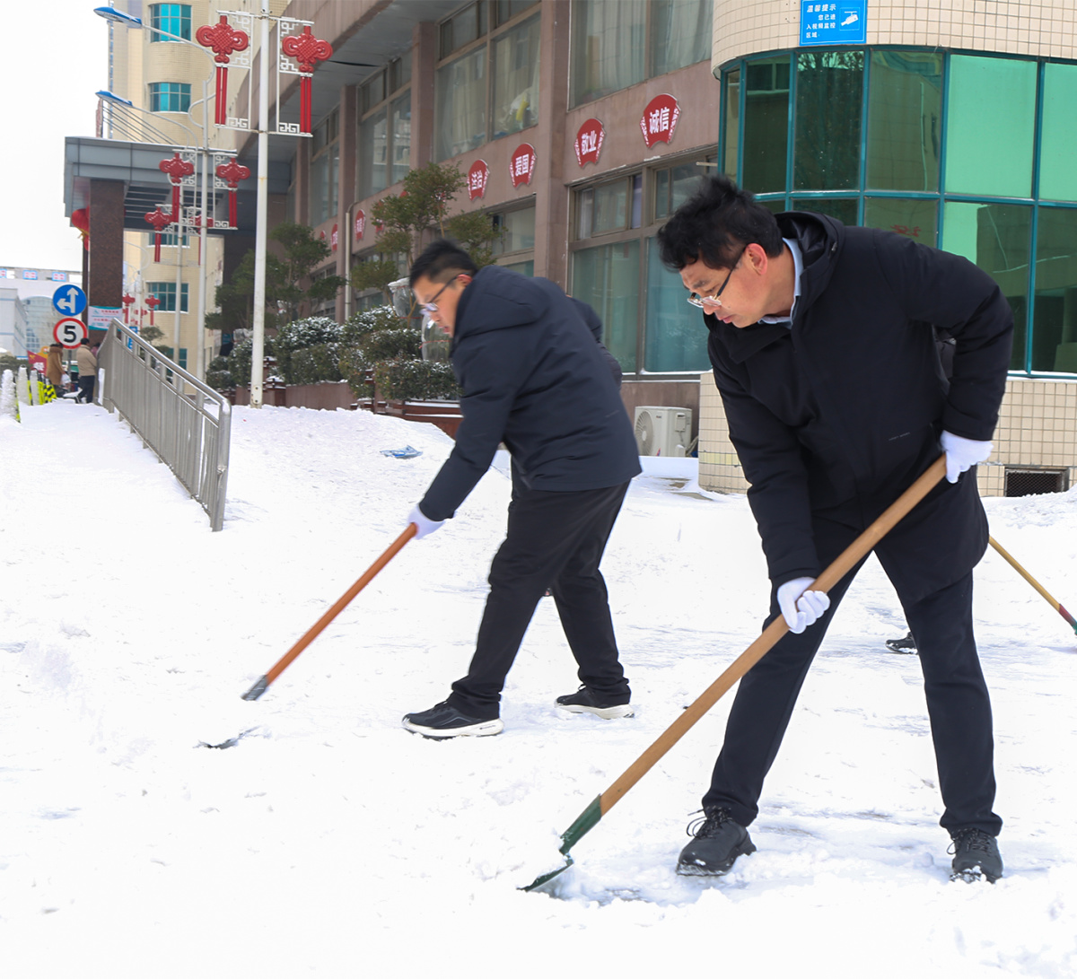 院內(nèi)掃雪結(jié)束后,院黨委書記柴運(yùn)洪、院長李奎等領(lǐng)導(dǎo)班子成員,又來到位于北環(huán)淞江路的醫(yī)院分包路段開展除雪。雖然戶外溫度低至零下,但大家無懼嚴(yán)寒,配合默契,迅速完成了清掃任務(wù),充分體現(xiàn)出該院作為三級綜合公立醫(yī)院的社會責(zé)任與擔(dān)當(dāng)。