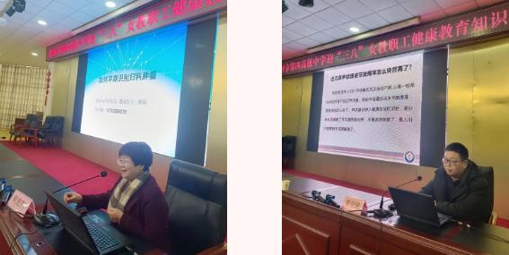 在三八婦女節(jié)來臨之際,為關(guān)愛女性健康,提高女性自我保健意識,增強疾病的防治能力,普及健康知識,應(yīng)漯河市第四高級中學(xué)領(lǐng)導(dǎo)邀請,2月28日下午,在社會工作部韓書環(huán)主任的積極協(xié)調(diào)組織下,漯河市骨科醫(yī)院(漯河醫(yī)專二附院、漯河市立醫(yī)院)婦產(chǎn)科何宏舸主任、外三科李賀鵬副主任醫(yī)師到該校為近200名女教職工進行健康知識講座。