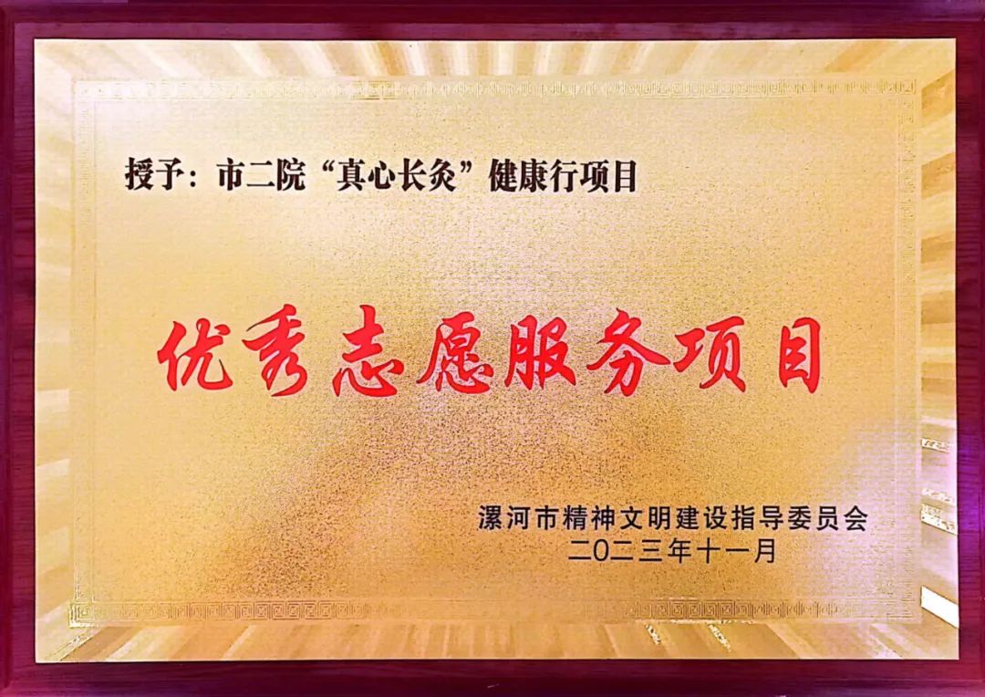 市二院“真心長灸”健康行項目榮獲“漯河市優(yōu)秀志愿服務(wù)項目”