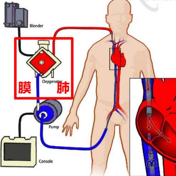 ECMO是體外膜肺氧合(extracorporeal membrane oxygenation)的英?簡稱,又稱為體外生命支持 ECLS (extracorporeal life support ),是指心臟功能或肺功能衰竭患者通過機械裝置將?從體內引流到體外,經膜式氧合器氧合后再由驅動泵將?液泵?體內的短期?、肺輔助技術。