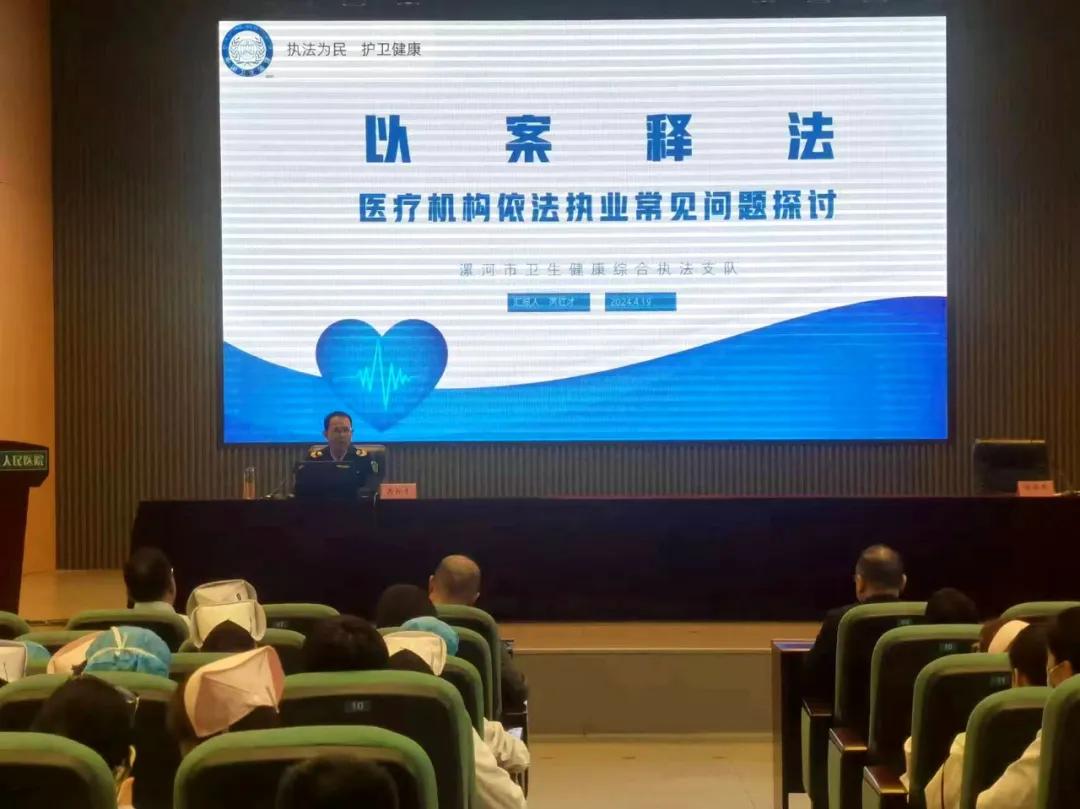 4月19日,市二院舉辦2024年度醫(yī)療衛(wèi)生法律法規(guī)專題培訓,特邀漯河市衛(wèi)生健康綜合執(zhí)法支隊副支隊長芮紅才前來授課。各臨床科室醫(yī)、護、技等300余人到會學習。本次培訓會由副院長張曉東主持。