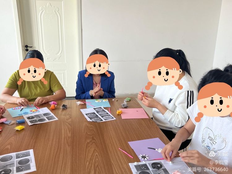 輔導員帶領(lǐng)同伴們一起完成關(guān)于“勞動最光榮”的主題粘土畫。