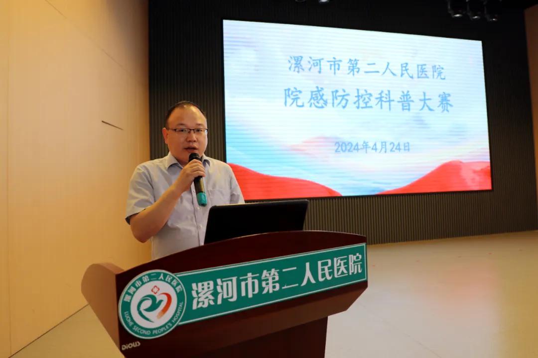 4月24日下午,市二院在12樓學(xué)術(shù)報(bào)告廳舉辦“醫(yī)療安全,感控先行”科普大賽,副院長謝彩玲、副院長張曉東、工會(huì)主席李世學(xué)及各科室代表200余人參加了活動(dòng)。