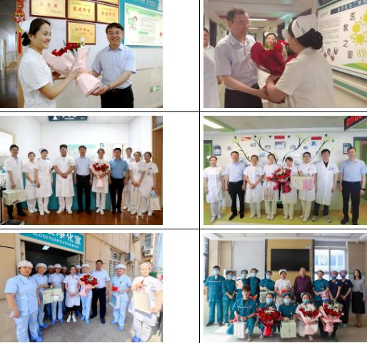 上午9點,醫(yī)院領(lǐng)導(dǎo)班子成員來到各個護理單元,為護理工作者送上精心準備的鮮花、蛋糕和慰問品。每到一處,院領(lǐng)導(dǎo)們都與護理人員親切握手,并詳細詢問大家的工作和生活情況,表達醫(yī)院的關(guān)心和支持,送去節(jié)日的祝福。院領(lǐng)導(dǎo)高度贊揚了護士們在臨床工作中的辛勤付出和無私奉獻,并表示護理工作者是醫(yī)院的寶貴財富,是患者康復(fù)的重要力量,各位的努力和付出,為醫(yī)院的發(fā)展做出了重要貢獻。