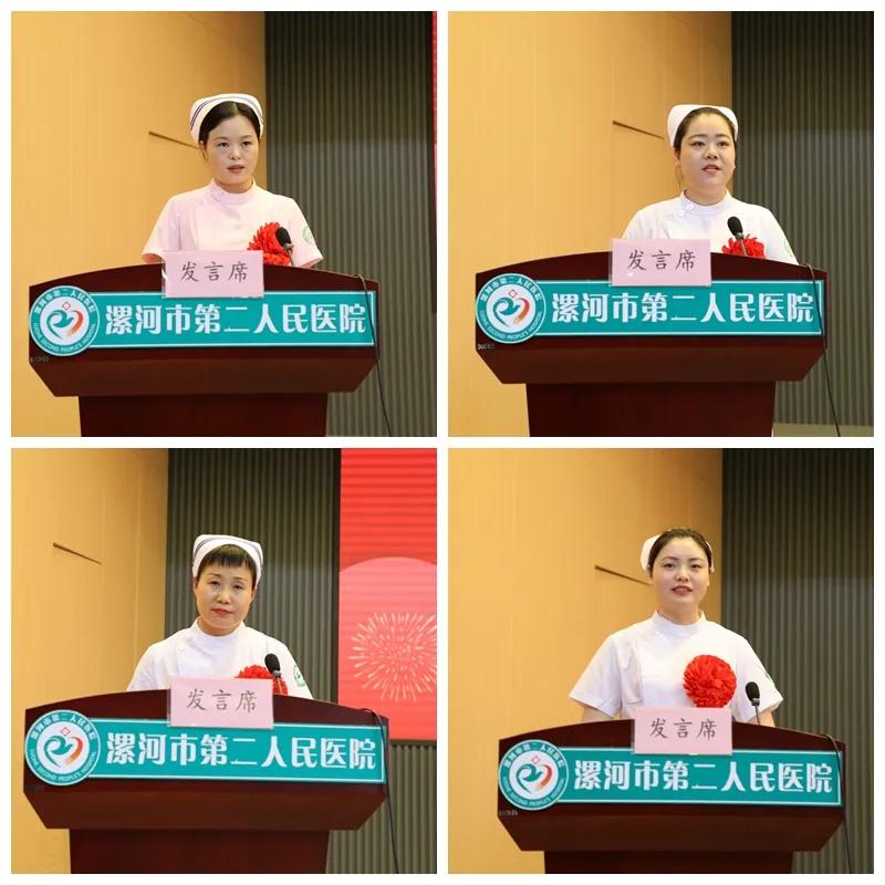 受表彰的市級優(yōu)秀護(hù)理團(tuán)隊代表小兒呼吸內(nèi)科胡媛媛、市級優(yōu)秀護(hù)士代表小兒外科張小玉、院級優(yōu)秀護(hù)理團(tuán)隊代表心血管內(nèi)科伊獻(xiàn)麗、院級優(yōu)秀護(hù)士代表神經(jīng)外科何孟麗分別做了典型發(fā)言。