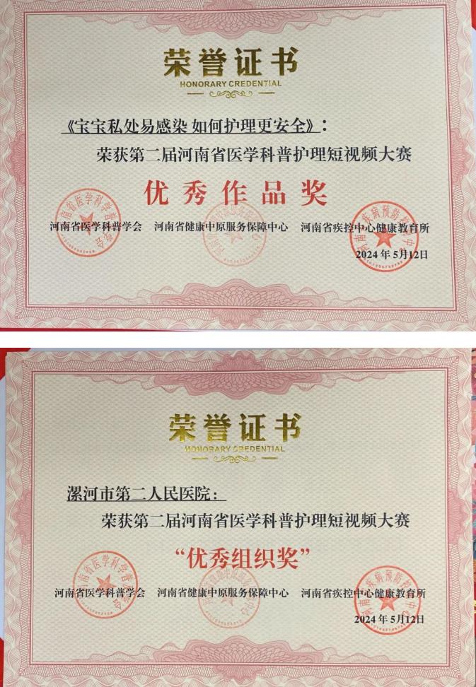 為慶祝113個(gè)國(guó)際護(hù)士節(jié),展示護(hù)理工作者的美好職業(yè)形象,引導(dǎo)公眾樹立正確的心理健康理念,5月8日,由河南省衛(wèi)生健康委宣傳處指導(dǎo),河南省醫(yī)學(xué)科普學(xué)會(huì)、河南省健康中原服務(wù)保障中心及河南省疾病預(yù)防控制中心健康教育所主辦的“第二屆河南省醫(yī)學(xué)科普護(hù)理短視頻大賽”在鄭州落下帷幕。本次比賽,市二院黨委高度重視,號(hào)召全院職工積極參與,征集優(yōu)秀護(hù)理科普短視頻,經(jīng)過(guò)積極籌備,廣泛動(dòng)員,共提交25部作品參賽。通過(guò)層層選拔,由張小玉、盧清麗、劉橋、王倩、陳星、劉曉燕護(hù)理團(tuán)隊(duì)拍攝的科普視頻《寶寶私處易感染 如何護(hù)理更安全》從全省18個(gè)地市442家醫(yī)療機(jī)構(gòu)2691部科普短視頻作品中脫穎而出,在本次大賽中榮獲優(yōu)秀獎(jiǎng)!同時(shí)醫(yī)院榮獲“優(yōu)秀組織獎(jiǎng)”!