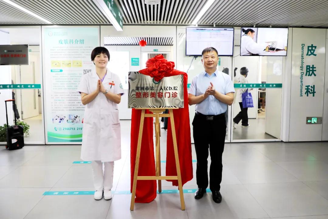儀式現(xiàn)場,黨委書記魏松與院長王瑾共同為“漯河市第二人民醫(yī)院整形美容門診”揭牌。