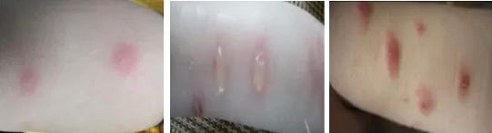 群集或散在的綠豆至花生米大小,略帶紡錘形的紅色風團樣損害,頂端常有小水皰,有的發(fā)生后不久便成為半球形隆起的緊張性大水皰,內(nèi)容清,有的皮疹為較硬的粟粒樣大丘疹,搔抓后呈風團樣腫大,多見于嬰幼兒及兒童,成人亦可患病,往往同一家庭中幾人同時發(fā)病,陣發(fā)性瘙癢,多于入夜加重。