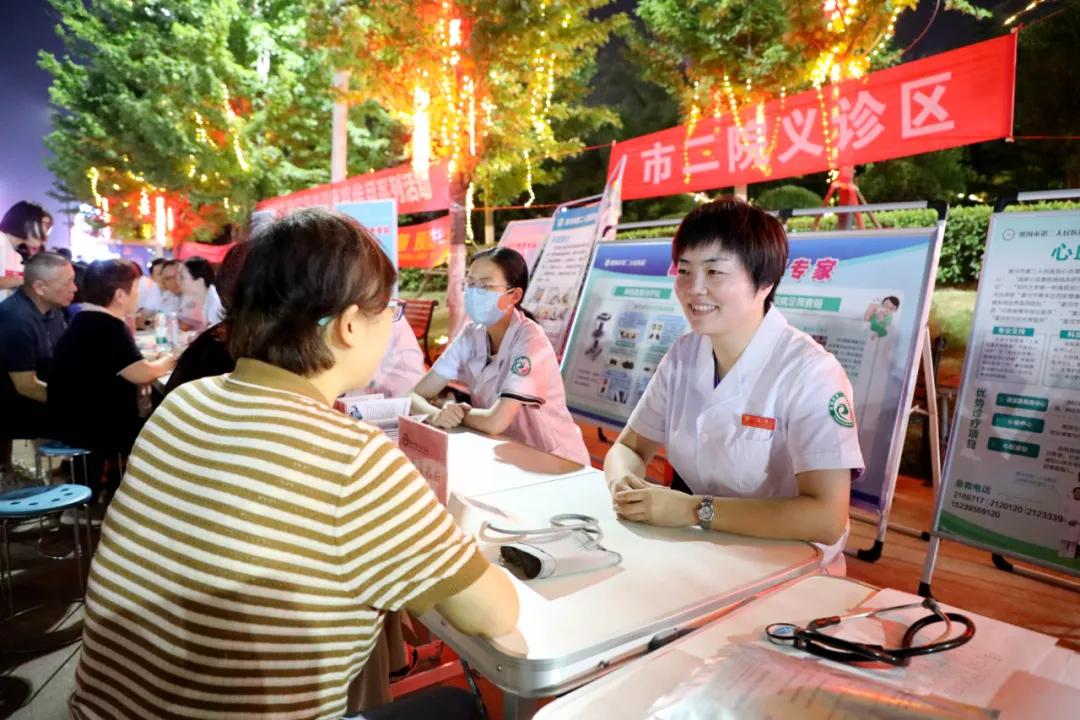 5月31日晚7時,根據(jù)市衛(wèi)健委統(tǒng)一部署,市二院在紅楓廣場開展了“漯河市衛(wèi)生健康青年人才發(fā)展聯(lián)盟大型義診活動”,在炎炎夏日為廣大市民送去陣陣清涼。市衛(wèi)健委黨組副書記、副主任王向良帶領市衛(wèi)健委人事科科長王滿華、醫(yī)政科長王彩紅等蒞臨現(xiàn)場并給予指導。