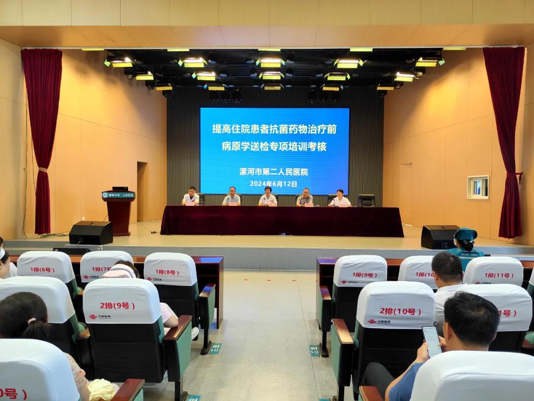 為貫徹落實(shí)國家衛(wèi)健委醫(yī)療質(zhì)量安全及河南省質(zhì)控工作改進(jìn)目標(biāo),提高抗菌藥物使用科學(xué)性、規(guī)范性,進(jìn)一步提升病原學(xué)送檢意識,按照醫(yī)院感控委員會工作計(jì)劃,6月12日下午,市二院感控辦、醫(yī)務(wù)科、藥劑科聯(lián)合,在12樓學(xué)術(shù)報告廳開展了“提高住院患者抗菌藥物治療前病原學(xué)送檢率”專項(xiàng)培訓(xùn)考核工作。院長王瑾、副院長張曉東及臨床各科室主任、護(hù)士長、醫(yī)生、護(hù)士等200余人參加。