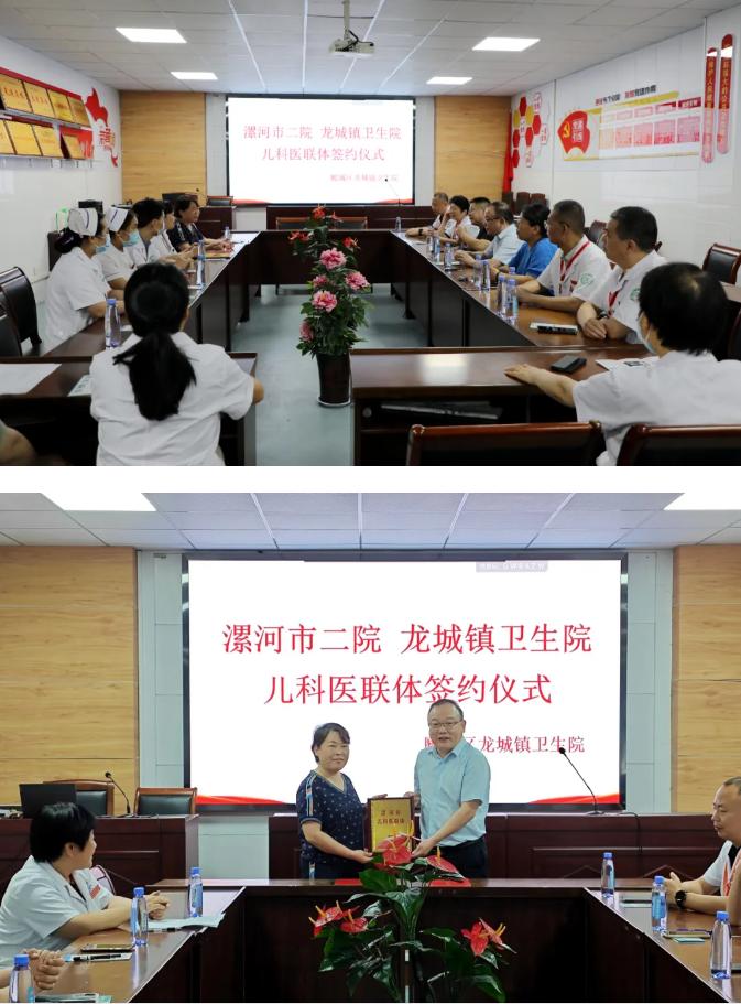 為提升漯河市兒科醫(yī)療服務能力,順暢危重、疑難、康復患者雙向轉診渠道,促進區(qū)域資源共享、信息互聯互通,推動分級診療制度建設,6月19日,市二院與龍城鎮(zhèn)衛(wèi)生院舉行了兒科醫(yī)聯體簽約暨授牌儀式。市二院副院長張曉東、郾城區(qū)紅十字會副會長李山峰、龍城鎮(zhèn)衛(wèi)生院院長葛雙云及相關科室人員參加了本次活動。