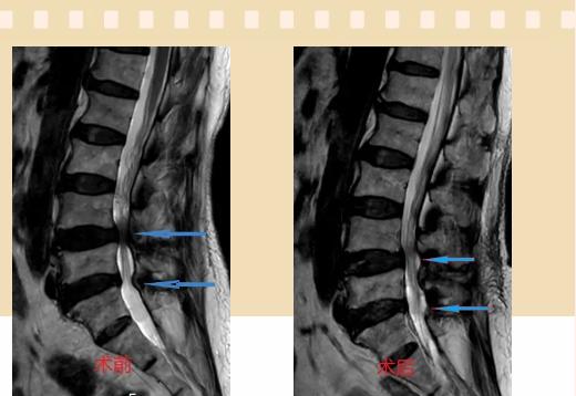 手術(shù)采用三個微創(chuàng)小切口,兩個節(jié)段減壓手術(shù)時間2.5小時,出血50ml。術(shù)后2天腰圍保護下床活動,術(shù)后5天順利出院。