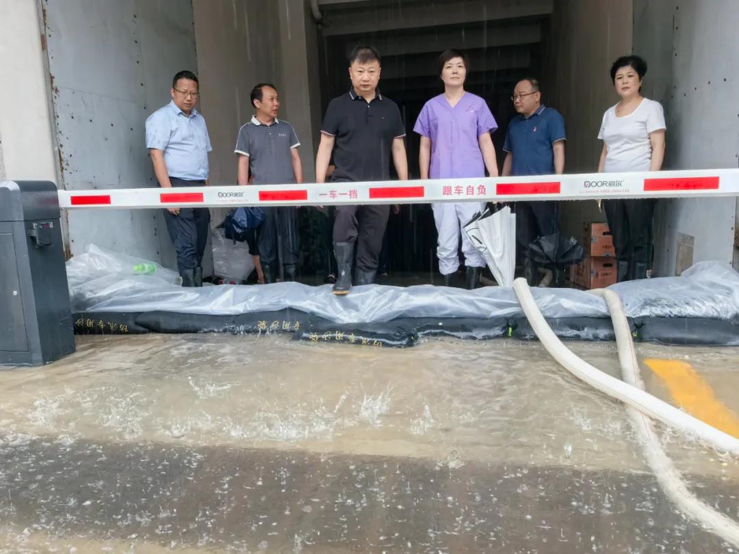 7 月16日,漯河普降暴雨,按照全市統(tǒng)一部署和衛(wèi)健委要求,市二院立即啟動防汛預(yù)案和應(yīng)急響應(yīng)機制,黨委書記魏松、院長王瑾靠前指揮,帶領(lǐng)班子成員和相關(guān)職能科室人員迅速行動,主動關(guān)閉地下車庫布置防水擋板和沙袋,同時加固配電房防水沙袋墻,重點點位人員全部上崗包點駐守,確保能夠第一時間發(fā)現(xiàn)問題及時響應(yīng)堵漏補缺,全力保障醫(yī)院安全穩(wěn)定運行。