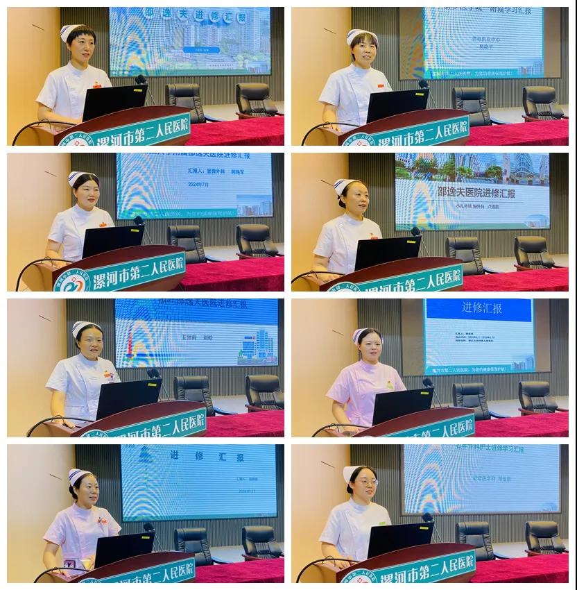 匯報(bào)會上,12名進(jìn)修護(hù)士分別從不同專業(yè)領(lǐng)域,將自己外出學(xué)習(xí)的所見所聞、所思所想等用精彩的圖文,以PPT的形式展示了所進(jìn)修醫(yī)院的專業(yè)技術(shù)、管理模式、護(hù)理理念、人性化護(hù)理服務(wù)、??谱o(hù)理特點(diǎn)等,并結(jié)合各自的專業(yè)特點(diǎn)和學(xué)習(xí)方向,自己??平ㄔO(shè)、護(hù)理文化、管理理念、先進(jìn)技術(shù)、工作流程、服務(wù)細(xì)節(jié)、學(xué)習(xí)感悟等方面進(jìn)行多角度、全方位的展示。同時(shí)將自身所學(xué)與工作實(shí)際相結(jié)合,制定了下一步工作改進(jìn)方案,達(dá)到了“一人學(xué)習(xí)、全院共享、共同進(jìn)步”的目的。本次匯報(bào)既是進(jìn)修成效的分享交流,更是一次思維的碰撞、??频慕涣?、理念的創(chuàng)新。