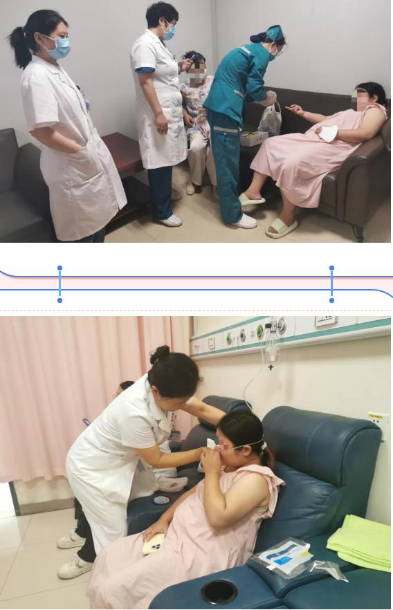 1分鐘后,婦產(chǎn)科張秀麗醫(yī)生迅速來(lái)到檢驗(yàn)科,2分鐘后,急診科的李想醫(yī)生、王靜護(hù)士推著平車,帶著急救設(shè)備也來(lái)到檢驗(yàn)科。他們爭(zhēng)分奪秒,分工合作,婦產(chǎn)科醫(yī)生查看孕婦及胎兒基本情況,急診科醫(yī)生、護(hù)士立即測(cè)量手指血糖、血壓等操作。隨后,大家快速的把患者轉(zhuǎn)移到婦產(chǎn)科門診胎心監(jiān)護(hù)室,立即進(jìn)行吸氧、胎心監(jiān)護(hù)等操作。