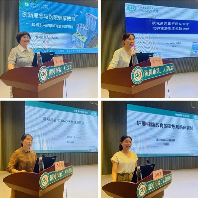 學(xué)術(shù)交流會(huì)上,來(lái)自全市各級(jí)醫(yī)療機(jī)構(gòu)的護(hù)理健康教育專(zhuān)家們齊聚一堂,結(jié)合自身的實(shí)踐經(jīng)驗(yàn)和研究成果,共同探討護(hù)理健康教育的新理念、新方法、新技術(shù)。市中心醫(yī)院護(hù)理部副主任劉素紅講解了《以健康教育為中心的護(hù)理實(shí)習(xí)教學(xué)體系構(gòu)建與實(shí)施》,分享醫(yī)院在護(hù)理實(shí)習(xí)教學(xué)中以健康教育為中心開(kāi)展帶教的亮點(diǎn)、實(shí)踐經(jīng)驗(yàn)和對(duì)未來(lái)的展望;市中醫(yī)院呼吸消化科護(hù)士長(zhǎng)王艷芳講解了《多形式健康教育助力醫(yī)院宣傳發(fā)展》,分享醫(yī)院開(kāi)展健康教育項(xiàng)目的具體實(shí)施和取得的成效;市醫(yī)專(zhuān)二附院中醫(yī)骨傷科護(hù)士長(zhǎng)王瓊講解了《健康宣教在臨床護(hù)理工作中的應(yīng)用》,通過(guò)了解健康教育的方式方法談到如何把健康教育落到實(shí)處;市六院護(hù)理部副主任崔臻講解了《創(chuàng)新理念與健康教育》,通過(guò)對(duì)傳統(tǒng)健康教育模式的反思談到創(chuàng)新理念在健康教育中的應(yīng)用;市二院護(hù)理部主任高凱霞講解了《家庭病床醫(yī)護(hù)團(tuán)隊(duì)如何進(jìn)行健康教育實(shí)踐活動(dòng)》,通過(guò)案例展示如何開(kāi)展健康教育;市二院普外科護(hù)士長(zhǎng)王書(shū)霞、神經(jīng)內(nèi)科護(hù)士長(zhǎng)徐曉爽分別講解了《腫瘤患者吃-動(dòng)-心平衡健康管理》《護(hù)理健康教育的發(fā)展與臨床實(shí)踐》,運(yùn)用實(shí)例、典故等強(qiáng)調(diào)健康教育的必要性和重要性,展示了臨床工作中取得的成果。