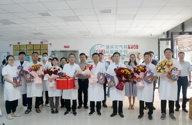 醫(yī)院領(lǐng)導(dǎo)班子成員深入各個(gè)科室,為醫(yī)師們送上精心準(zhǔn)備的鮮花、蛋糕和慰問(wèn)品。每到一處,院領(lǐng)導(dǎo)們都與大家親切握手,并詳細(xì)詢(xún)問(wèn)大家的工作和生活情況,表達(dá)醫(yī)院的關(guān)心和支持,送去節(jié)日的祝福。院領(lǐng)導(dǎo)高度贊揚(yáng)了醫(yī)師們?cè)谂R床工作中的辛勤付出和無(wú)私奉獻(xiàn),并表示醫(yī)務(wù)工作者是社會(huì)最崇高的職業(yè)之一,他們用自己的智慧和汗水守護(hù)著患者的生命健康。在這個(gè)醫(yī)師節(jié)里,我們要向全體醫(yī)務(wù)工作者致以最崇高的敬意和感謝。醫(yī)院也將繼續(xù)加大對(duì)醫(yī)務(wù)工作者的關(guān)心和支持力度,為他們創(chuàng)造更好的工作條件。
