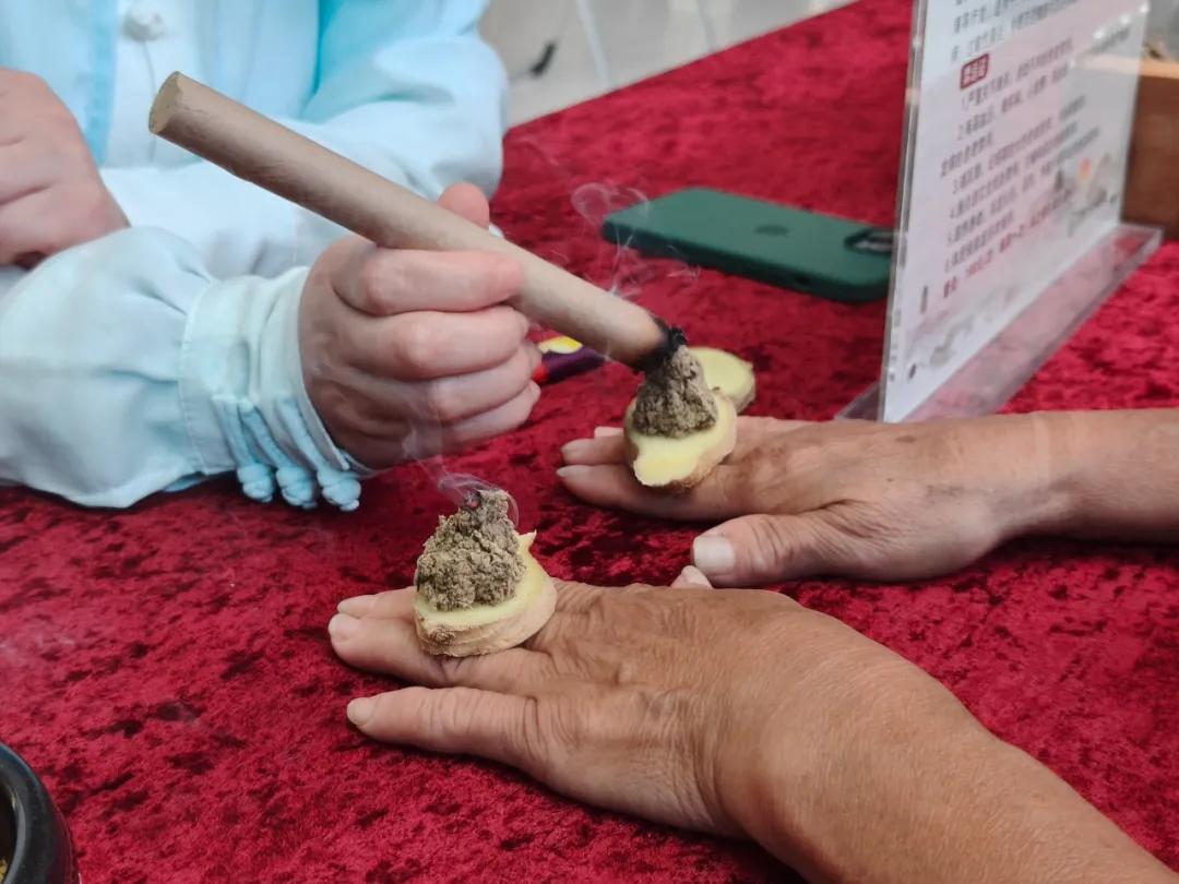 健康講座過后,腦二科主任付菊花為群眾進行一對一的義診服務,給予把脈問診、開具健康處方及健康指導;中醫(yī)骨干護士為群眾講解中醫(yī)養(yǎng)生知識,給予火龍罐、艾灸等中醫(yī)療法體驗;中藥師給予膳食指導和養(yǎng)生茶飲推薦,群眾表示很實用。
