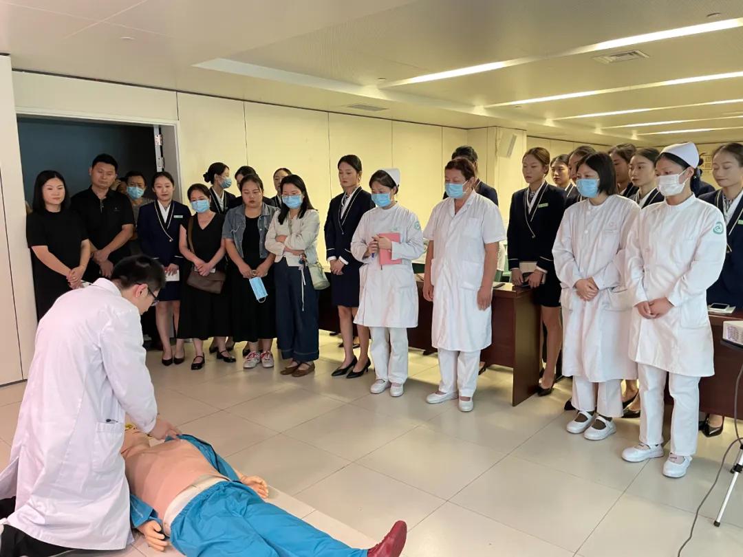 原野醫(yī)生著重介紹了胸痛患者的院內緊急救治程序及心肺復蘇術的三個核心步驟,并借助模型人進行了細致、規(guī)范的現(xiàn)場演示,同時,他對心肺復蘇術進行了深入指導,展示了急救的完整過程,讓急救知識更加直觀易懂。經(jīng)過本次培訓,導診工作人員掌握了急救相關知識和操作技能,為積極參加急救行動增強了信心。