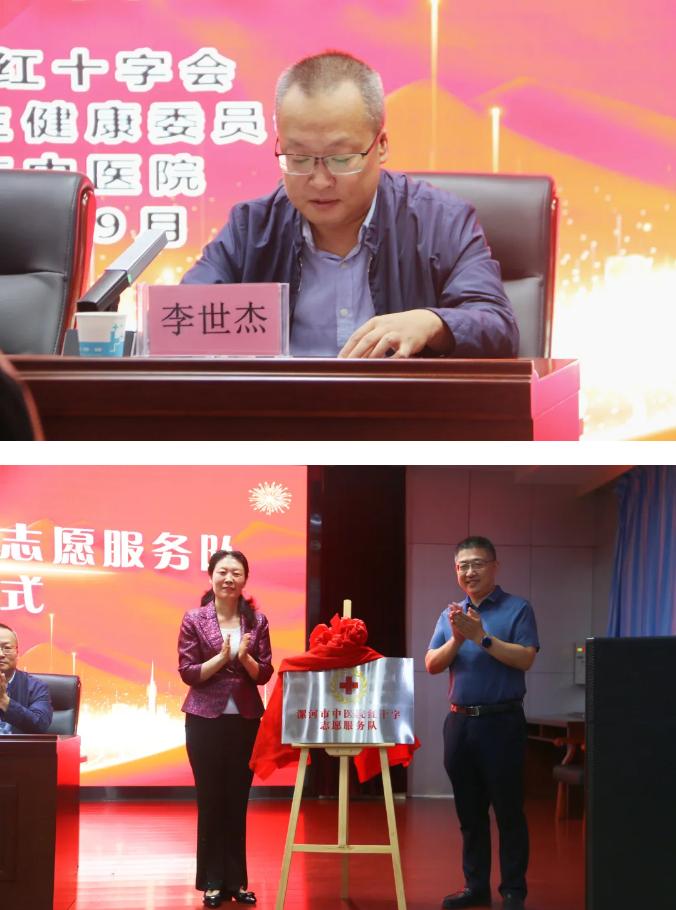 為積極響應社會公益號召,弘揚紅十字精神,促進醫(yī)療衛(wèi)生與志愿服務深度融合,2024年9月25日上午,市紅十字會、市衛(wèi)健委聯(lián)合市中醫(yī)院在醫(yī)院門診四樓學術報告廳隆重舉辦“喜迎國慶 志愿同行——漯河市中醫(yī)院紅十字志愿服務隊揭牌授旗儀式”。市紅十字會黨組書記、常務副會長孫潁華,市衛(wèi)健委黨組副書記、副主任王向良,市中醫(yī)院黨委書記楊軼,市中醫(yī)院黨委副書記、副院長楚勝,市紅十字會黨組成員、副會長李世杰出席揭牌授旗儀式。各縣區(qū)、功能區(qū)紅十字會負責同志、市直醫(yī)療衛(wèi)生機構和漯河醫(yī)專各附屬醫(yī)院分管領導以及市中醫(yī)院志愿者職工代表近200人參加。會議由楚勝主持。