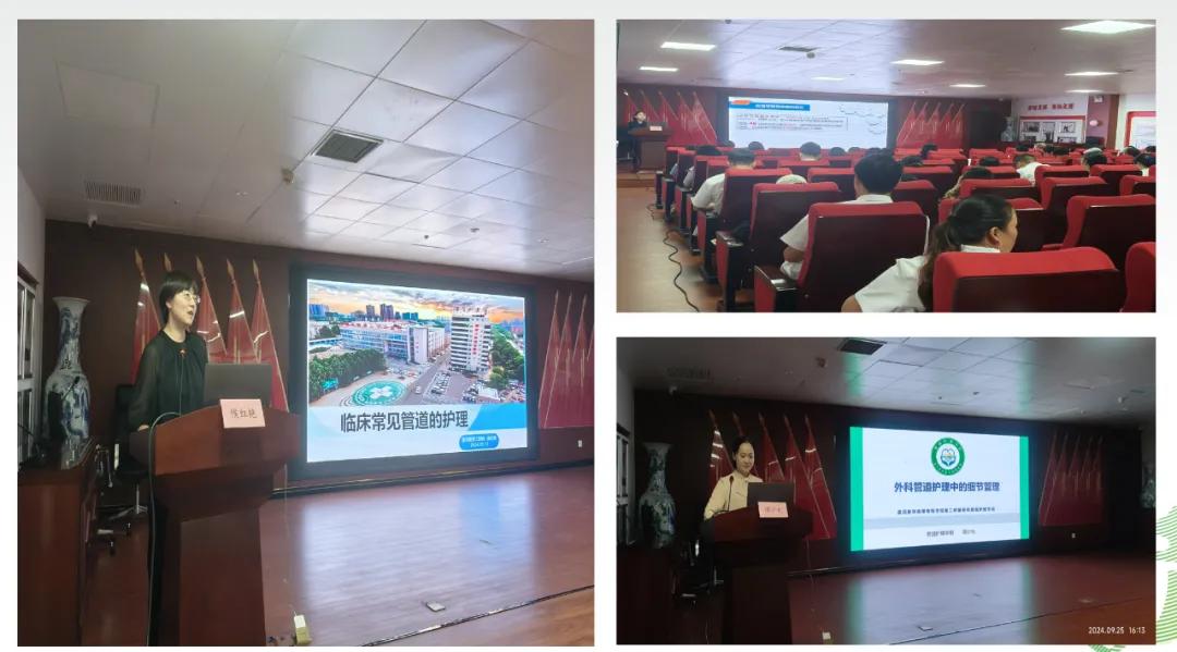 漯河市骨科醫(yī)院管道護(hù)理學(xué)組組長侯紅艷護(hù)士長通過PPT培訓(xùn)的方式對各類管道的固定方法、固定流程,標(biāo)識使用進(jìn)行了詳細(xì)的講解,護(hù)士們加深了對管道規(guī)范固定重要性的認(rèn)識,對規(guī)范臨床管道護(hù)理工作起到了良好的指導(dǎo)作用。婦產(chǎn)科護(hù)士長譚少允針對《外科管道護(hù)理中的細(xì)節(jié)管理》做了詳盡的說明??祻?fù)醫(yī)學(xué)科護(hù)士長田智慧分享了《血管導(dǎo)管相關(guān)感染預(yù)防與控制指南解讀》,預(yù)防血管內(nèi)導(dǎo)管相關(guān)血流感染的原因進(jìn)行分析,并采取相關(guān)舉措后在臨床中獲取的成效和學(xué)員們分享經(jīng)驗(yàn)。