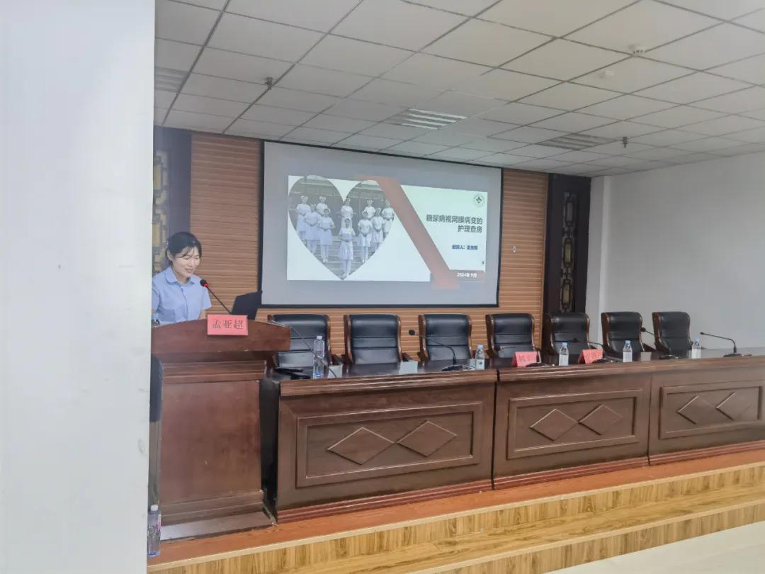 講座中,主管護(hù)師孟亞超通過一例糖尿病視網(wǎng)膜病變患者的實例,巧妙引出講座主題《糖尿病視網(wǎng)膜病變患者的術(shù)后護(hù)理查房》。她詳細(xì)介紹了護(hù)理查房的內(nèi)容、規(guī)范化流程以及如何去分析查房的重點問題和有效的實施相關(guān)護(hù)理措施。