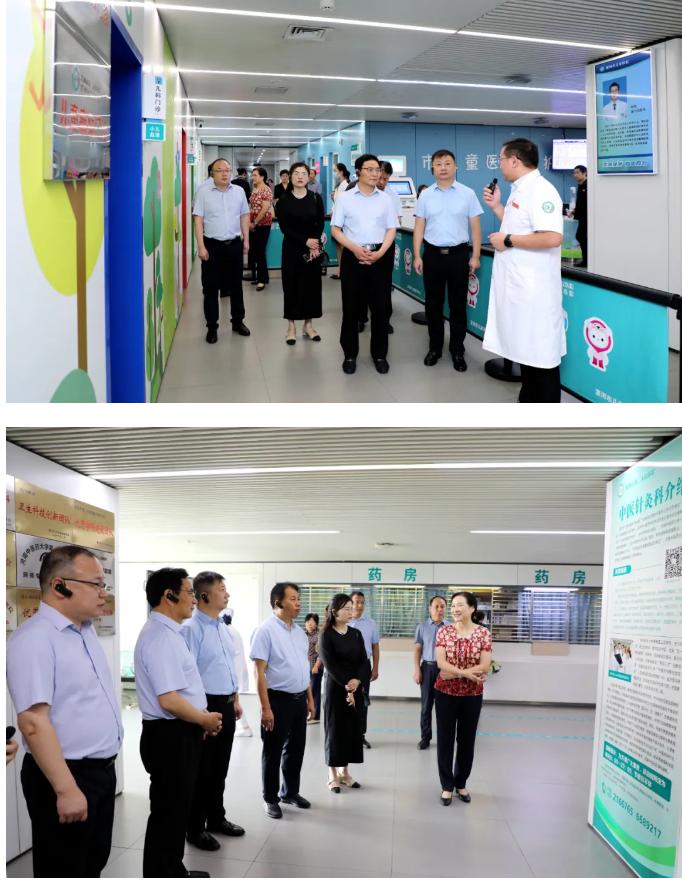 余亞明院長一行在門診大廳聽取了市二院近年來高質(zhì)量發(fā)展情況介紹,并到兒科門診、中醫(yī)針灸科等點(diǎn)位實(shí)地參觀。先后聽取了漯河市兒童醫(yī)療中心副主任、市二院小兒呼吸內(nèi)科主任郭先鋒,中醫(yī)針灸科副主任趙劍鋒關(guān)于河南省重點(diǎn)培育學(xué)科兒科和河南省重點(diǎn)中醫(yī)??浦嗅t(yī)針灸科相關(guān)經(jīng)驗(yàn)和特色做法的講解。
