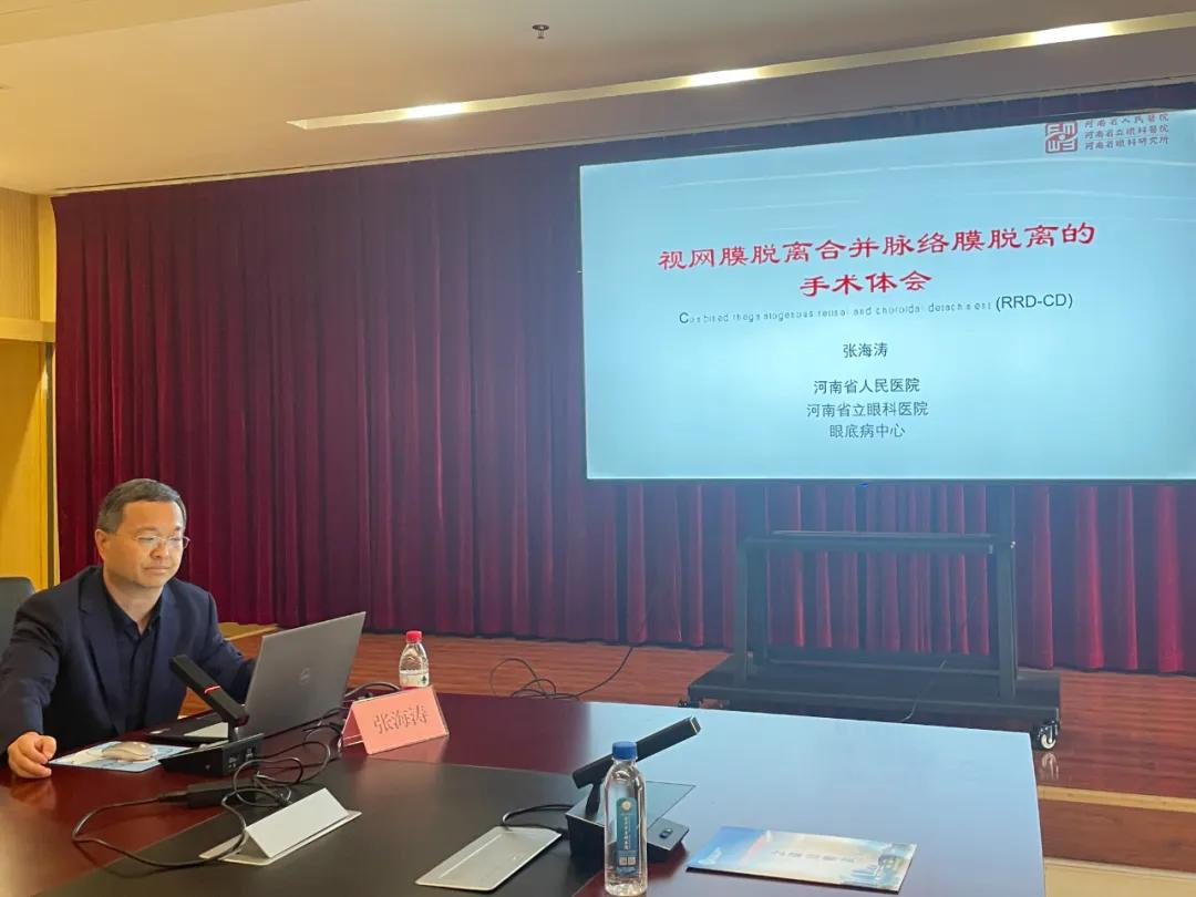 河南省人民醫(yī)院張海濤教授通過手術(shù)視頻,生動展示了復(fù)雜性眼部疾病手術(shù)治療與挑戰(zhàn)。他指出,這類手術(shù)不僅考驗醫(yī)生的臨床經(jīng)驗和手術(shù)技巧,更要求醫(yī)生具備高度的責(zé)任心和應(yīng)急處置能力。得到了參會者的肯定及認(rèn)同,并為論壇的深入討論開拓了思路。