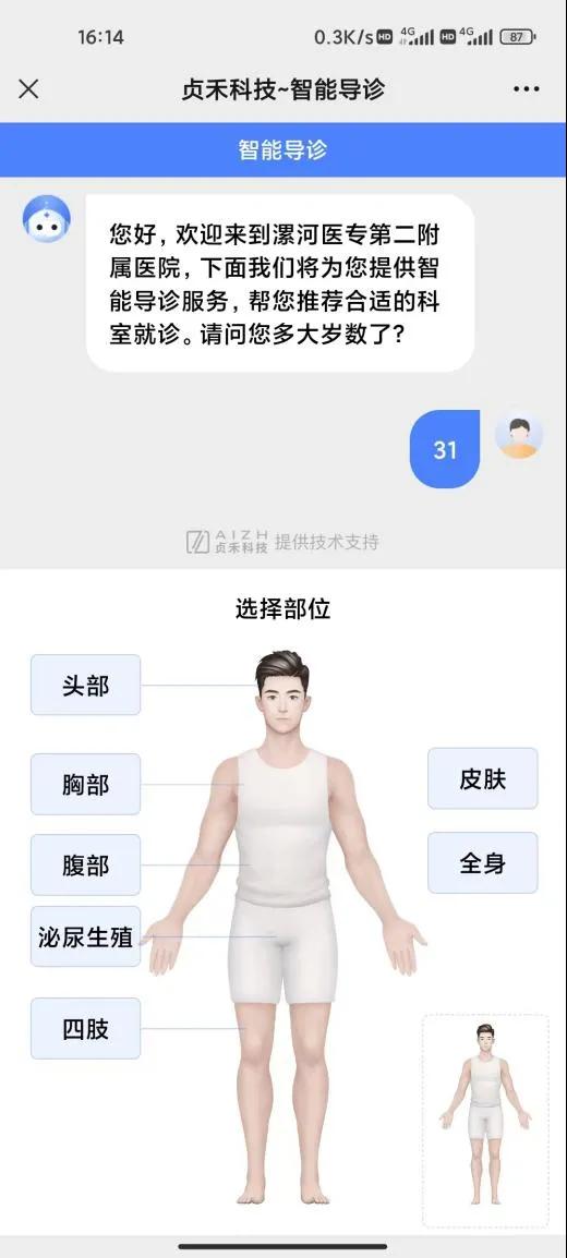 為了方便群眾就醫(yī),解決患者就醫(yī)過(guò)程中“知癥不知病”、“知病不知科”的問(wèn)題,“漯河市立醫(yī)院”微信服務(wù)號(hào)推出智能導(dǎo)診功能,根據(jù)患者病情描述、給出分診建議、推薦相關(guān)科室、找到合適醫(yī)生,不但優(yōu)化了患者就醫(yī)流程,而且減少人工分診工作量、避免人員聚集。