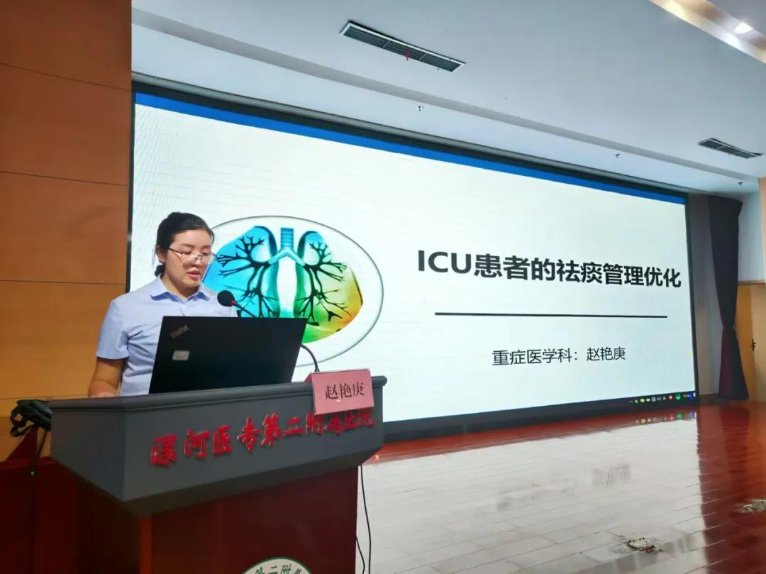 漯河市骨科醫(yī)院重癥醫(yī)學科護士長趙艷庚以《ICU患者的祛痰管理優(yōu)化》為課題。為大家詳細講解了ICU患者祛痰管理的重要性,痰液的產(chǎn)生機制、影響因素及祛痰管理實施辦法,引發(fā)對重癥肺炎患者呼吸道管理的更廣泛關(guān)注和重視,激勵醫(yī)護人員不斷學習和更新知識,提升專業(yè)技能,為患者提供更好的醫(yī)療服務。