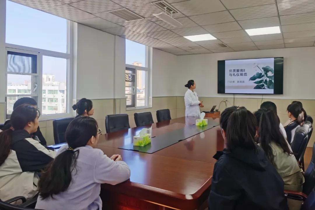 趙晶晶護(hù)士長對見習(xí)人員進(jìn)行《優(yōu)質(zhì)服務(wù)和禮儀規(guī)范》的培訓(xùn),提升見習(xí)人員的形象素質(zhì)。