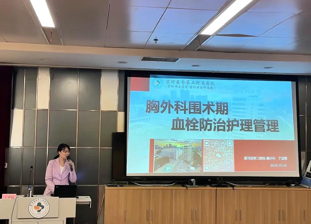 丁亞楠護士長以《胸外科圍術期血栓防治護理管理》為題,講述胸外科血栓防治護理管理是確保患者圍術期安全的重要環(huán)節(jié),需要貫穿患者術前、術中、術后及出院后的全過程,通過全面的評估、個性化的預防措施、密切的病情觀察和有效的抗凝治療手段,降低血栓形成的風險,確?;颊叩陌踩at(yī)護不分家,醫(yī)療團隊及護理團隊的共同發(fā)展才能促進??平ㄔO的發(fā)展,丁亞楠護士長促使胸外護理團隊的??平ㄔO,對VTE的防治管理規(guī)范管理,為胸外的發(fā)展提供助力。
