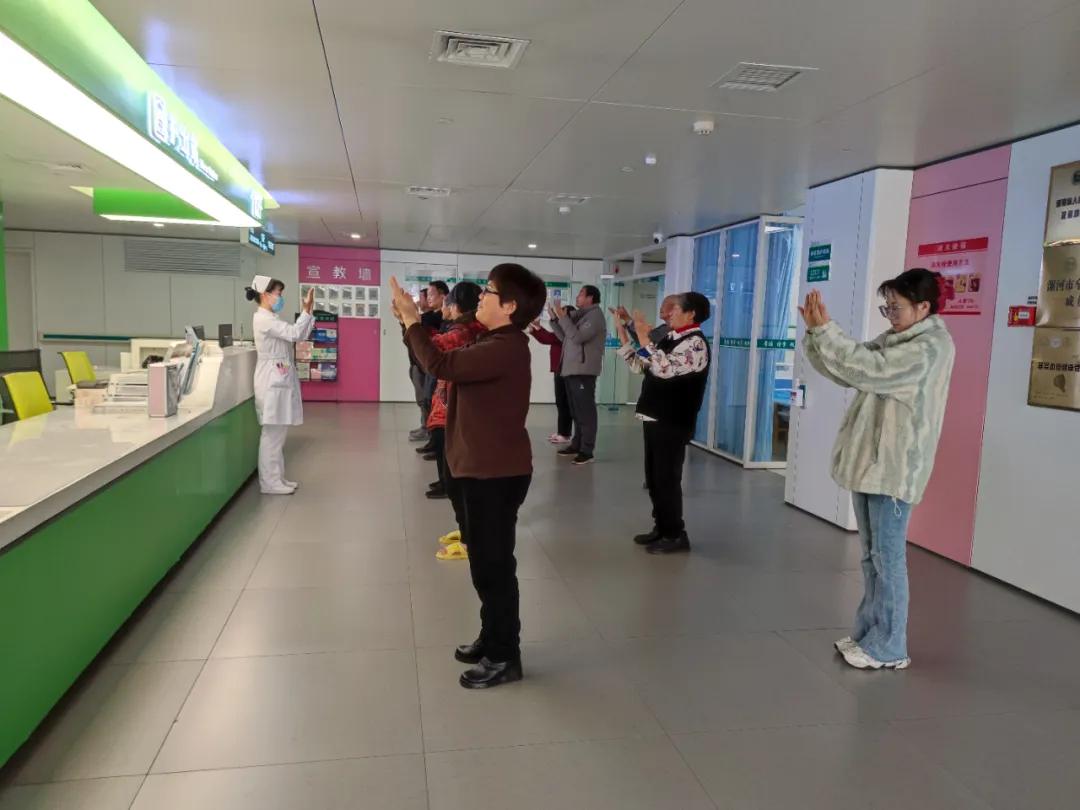 針對病區(qū)里的這些老年患者群體,改編創(chuàng)新了一套適合他們的手指健腦操,每周召集住院的老年患者在病區(qū)開展手指操活動,手指操簡單易學,適合普及,迅速得到了病區(qū)老年患者的熱捧歡迎,現(xiàn)場其樂融融,病區(qū)整個走廊里充滿了歡聲笑語。