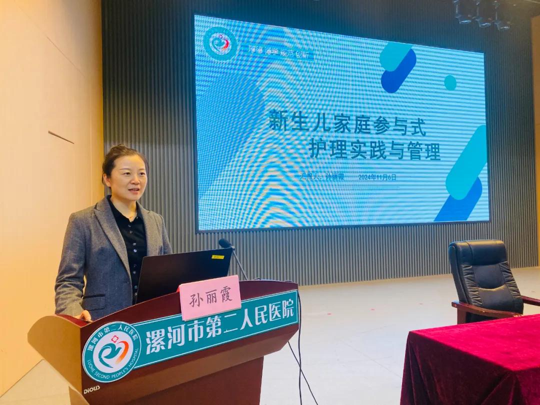 市二院護(hù)理部副主任、兒童醫(yī)療中心護(hù)士長(zhǎng)孫麗霞以《新生兒家庭參與式護(hù)理管理與實(shí)踐》為題進(jìn)行了分享交流,為大家詳細(xì)介紹了新生兒重癥監(jiān)護(hù)病房新的管理模式。