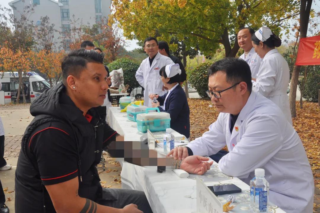 中醫(yī)義診區(qū)域,副主任中醫(yī)師彭壯、主治中醫(yī)師李佳攜手坐診,學(xué)生們排起了長(zhǎng)長(zhǎng)的隊(duì)伍前來(lái)體驗(yàn)中醫(yī)號(hào)脈等特色診療服務(wù)。在漯河醫(yī)專學(xué)習(xí)的數(shù)名外國(guó)留學(xué)生深深熱愛著中華傳統(tǒng)文化,對(duì)中醫(yī)藥知識(shí)有著濃厚的興趣,在對(duì)外交流處王瑾老師的陪同下,紛紛參與體驗(yàn)。市中醫(yī)院彭壯醫(yī)生為斯里蘭卡籍留學(xué)生仝深平中醫(yī)把脈問診,針對(duì)其脈象,給予合理的飲食建議和健康生活指導(dǎo),受到外國(guó)留學(xué)生們的點(diǎn)贊!