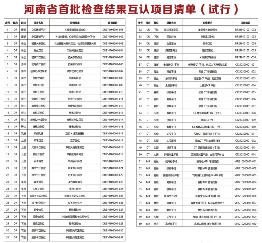 1.全省同級醫(yī)療機構間,屬互認項目的檢查檢驗結果,應互相認可。