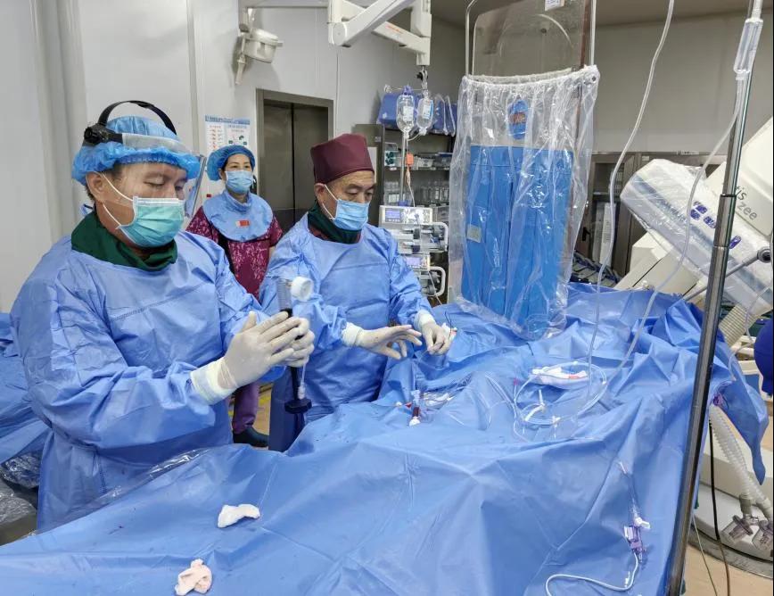 在這些患者中,一位正在消化內科住院的超高齡老人格外引人關注。心電圖結合心肌酶結果顯示,該患者發(fā)生了急性非ST段抬高型心肌梗死,需要立即進行介入手術治療?;颊咭咽?1歲高齡,這樣的年紀與身體狀況,發(fā)生心梗無疑是雪上加霜。由于老先生年齡過大,且伴有多種基礎疾病,手術的風險極高。盡管困難重重,但心內一科和消化內科的醫(yī)護人員并沒有退縮——他們迅速啟動了胸痛綠色通道及危重患者搶救流程,科室聯(lián)手針對根據(jù)患者的身體狀況為其制定了個性化的介入手術治療方案。在手術過程中,陳建忠主任帶領宋松根副主任及團隊憑借著精湛的醫(yī)術和默契的配合,成功為患者實施了冠狀動脈造影及支架植入術,打通了他堵塞的血管,又一次為年邁的老人點燃了生的希望。