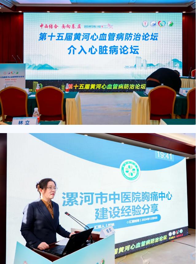 12月8日,漯河市中醫(yī)院黨委書記、胸痛中心主任委員楊軼,胸痛中心醫(yī)療總監(jiān)張茜受邀參加第十五屆黃河心血管防治論壇。會上,市中醫(yī)院黨委書記、胸痛中心主任委員楊軼向來自國內(nèi)、省內(nèi)的專家同道們分享漯河市中醫(yī)院胸痛中心建設經(jīng)驗。