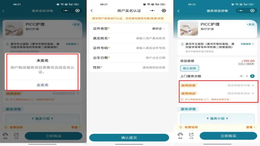 3.購(gòu)買(mǎi)之后需實(shí)名認(rèn)證,請(qǐng)正確填寫(xiě)各項(xiàng)信息,服務(wù)對(duì)象填寫(xiě)的是需要被護(hù)理的患者,地址填寫(xiě)準(zhǔn)確。