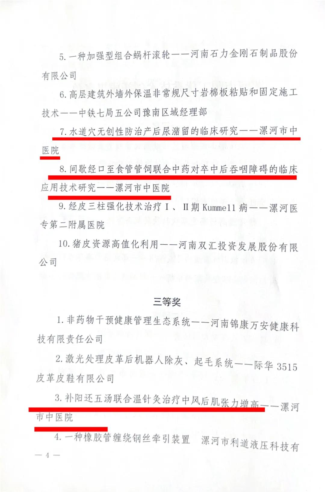 河市中醫(yī)院3個(gè)項(xiàng)目獲得漯河市職工優(yōu)秀技術(shù)創(chuàng)新成果獎(jiǎng)項(xiàng)