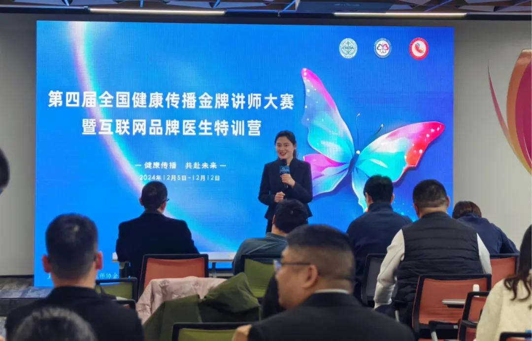 12月5日,第四屆健康傳播金牌講師大賽暨互聯(lián)網(wǎng)品牌醫(yī)生特訓(xùn)營(yíng)在河北雄安健康中國(guó)傳播大廈正式拉開帷幕,周會(huì)芳同來(lái)自全國(guó)各地五大賽區(qū)的100位業(yè)內(nèi)知名健康傳播達(dá)人、網(wǎng)絡(luò)大V共同角逐。此次大賽,由院士領(lǐng)隊(duì),博導(dǎo)指導(dǎo),設(shè)有個(gè)人風(fēng)采展示、情景劇展演、醫(yī)學(xué)人文演講、1分鐘即興科普、視頻拍攝剪輯、12小時(shí)極限拍攝網(wǎng)劇、5分鐘授課能力展示等8個(gè)環(huán)節(jié),她一步步突破自我,最終躋身全國(guó)前六十強(qiáng)。