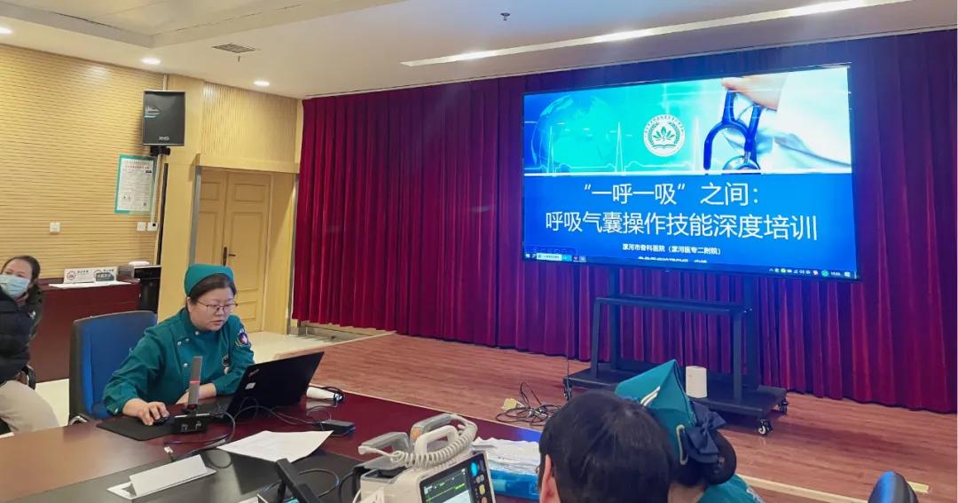 應(yīng)鴿老師則聚焦《“一呼一吸”之間:呼吸氣囊操作技能深度培訓(xùn)》,對簡易呼吸器的部件識別、結(jié)構(gòu)原理、使用注意事項等進行細致入微的講解與演示。從球囊完整性檢查,到氧氣管道連接,再到通氣操作的精準(zhǔn)手法,逐一示范,明確強調(diào)其核心作用在于保障患者氧供,且使用前務(wù)必確保呼吸器完好、氣道通暢,使學(xué)員們扎實掌握了呼吸氣囊的操作要領(lǐng)。