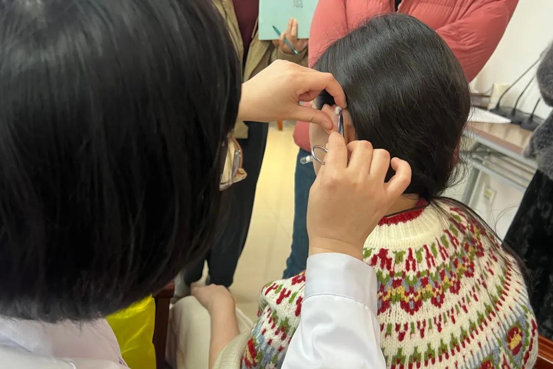 講座結(jié)束,付曉芳醫(yī)生通過“望、聞、問、切”中醫(yī)四診了解了大家的身體健康狀況,為大家提供個(gè)性化的中醫(yī)指導(dǎo)和預(yù)防保健養(yǎng)生知識(shí)。針灸科護(hù)士長(zhǎng)張瑞根據(jù)大家個(gè)體特點(diǎn)進(jìn)行辨證施護(hù),為大家進(jìn)行耳穴壓豆、艾灸、刮痧等中醫(yī)特色療法體驗(yàn),受到大家一致好評(píng)。