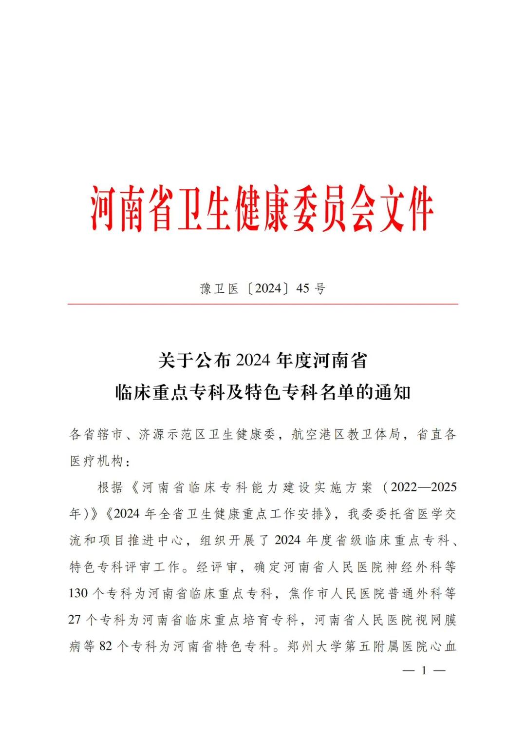 12月24日,河南省衛(wèi)生健康委下發(fā)了《關(guān)于公布2024年度河南省臨床重點專科及特色??泼麊蔚耐ㄖ罚ㄔバl(wèi)醫(yī)〔2024〕45號)。市二院兒科、腫瘤科(腫瘤放療科、腫瘤內(nèi)科)、康復(fù)醫(yī)學(xué)科成功通過評審,被確定為河南省臨床重點培育??啤?/div>