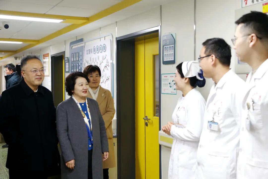 隨后張祎捷一行來到住院病區(qū),對(duì)醫(yī)院取得的成績(jī)給予了充分肯定,鼓勵(lì)大家在新的一年里繼續(xù)努力,不斷提高醫(yī)療技術(shù)水平,為患者提供更加優(yōu)質(zhì)的醫(yī)療服務(wù)。同時(shí),領(lǐng)導(dǎo)們還關(guān)心地詢問了醫(yī)護(hù)人員的工作和生活情況,希望他們?cè)诠ぷ髦嗄軌蛘疹櫤米约汉图胰?,并送上?jié)日的慰問品。