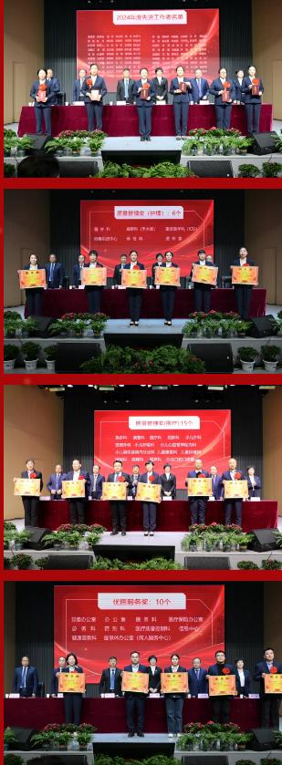 大會對2024年表現(xiàn)優(yōu)秀的集體和個人進行了隆重表彰,依次頒發(fā)了“年度工作先進工作者”“護理質(zhì)量管理獎”“醫(yī)療質(zhì)量管理獎”“優(yōu)質(zhì)服務(wù)獎”“目標(biāo)管理先進科室”和“特殊貢獻獎”。獲獎代表們臉上洋溢著自豪的笑容依次上臺領(lǐng)獎,臺下的陣陣掌聲,更是獻給榜樣的最高禮贊。