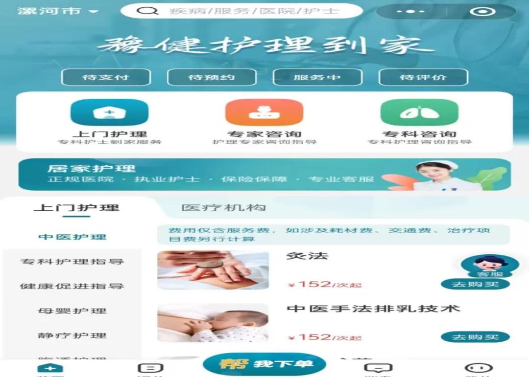 在醫(yī)院公眾號(hào)內(nèi)輕松一點(diǎn),即可進(jìn)入預(yù)約界面。選擇您需要的服務(wù)項(xiàng)目,填寫相關(guān)信息,剩下的就交給我們!專業(yè)的護(hù)士將根據(jù)您的需求和時(shí)間安排,準(zhǔn)時(shí)上門提供服務(wù)。整個(gè)過程簡(jiǎn)單快捷,讓您無需再為排隊(duì)掛號(hào)、路途奔波而煩惱。